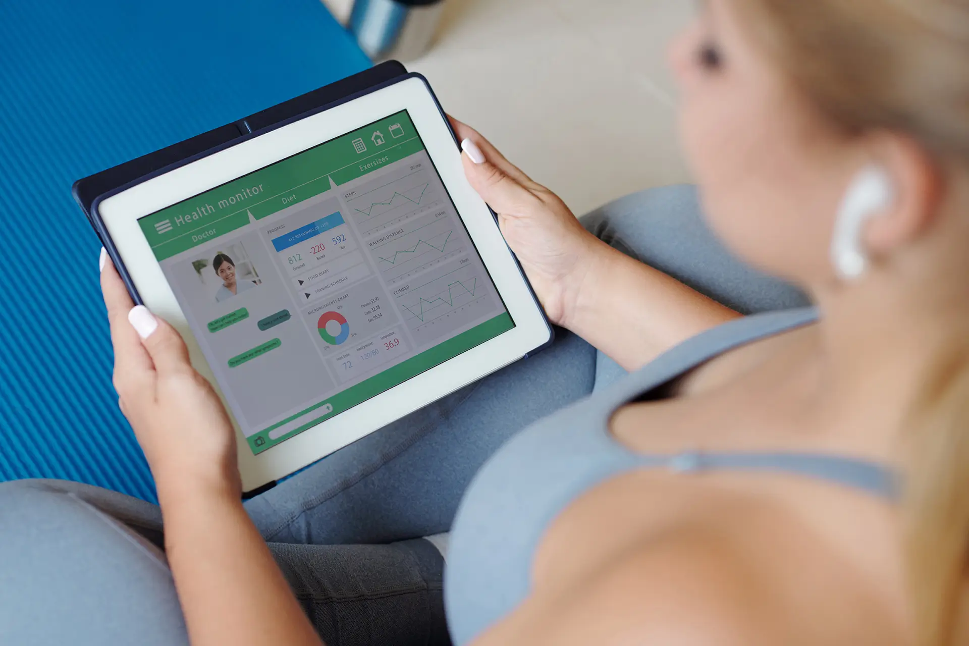 Integrate your wearables or use our in-app tools to monitor essential health metrics like heart rate, blood pressure, and step counts, helping you stay mindful of your overall wellness.